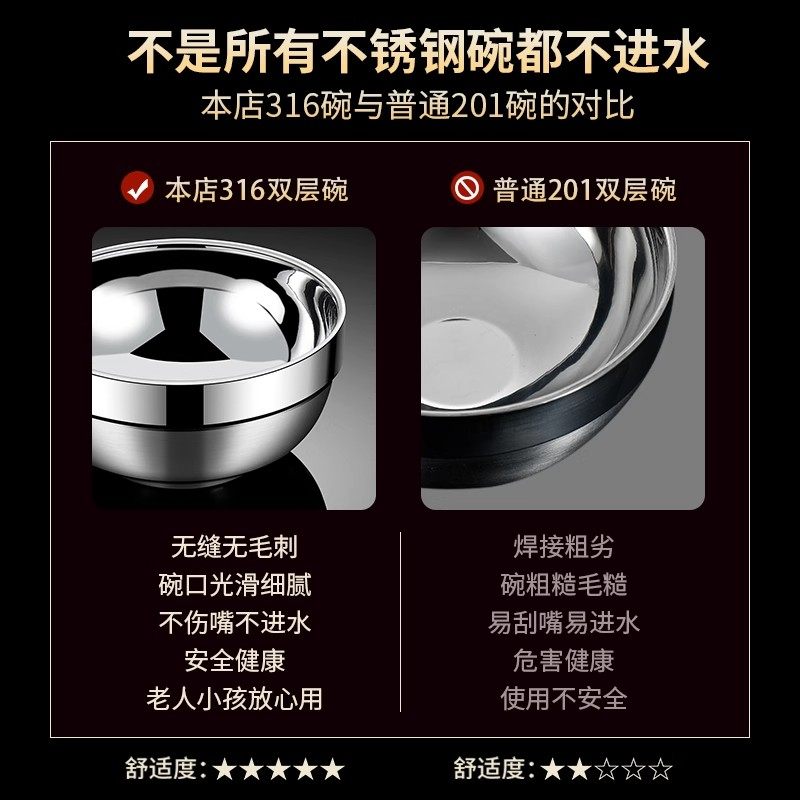 特厚316不锈钢铂金碗家用双层防烫隔热儿童学生成人米饭碗汤碗