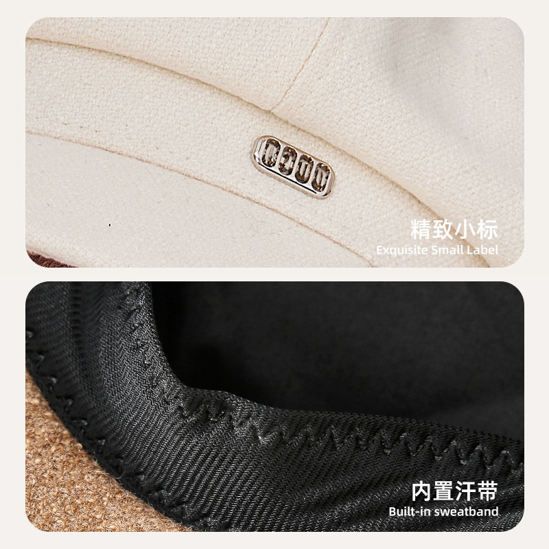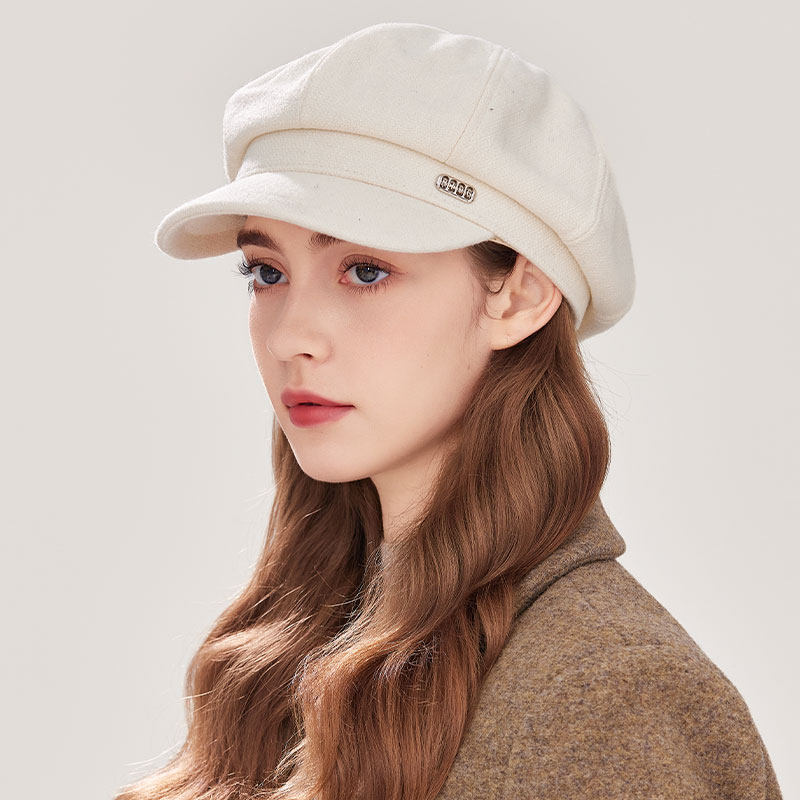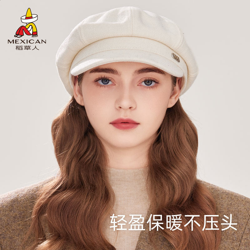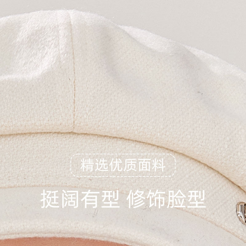 稻草人白色八角贝雷帽女2025新款高级感秋冬复古气质显脸小报童帽