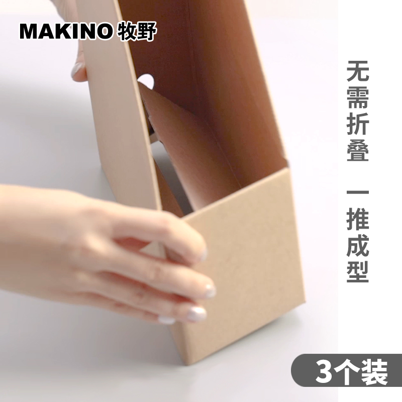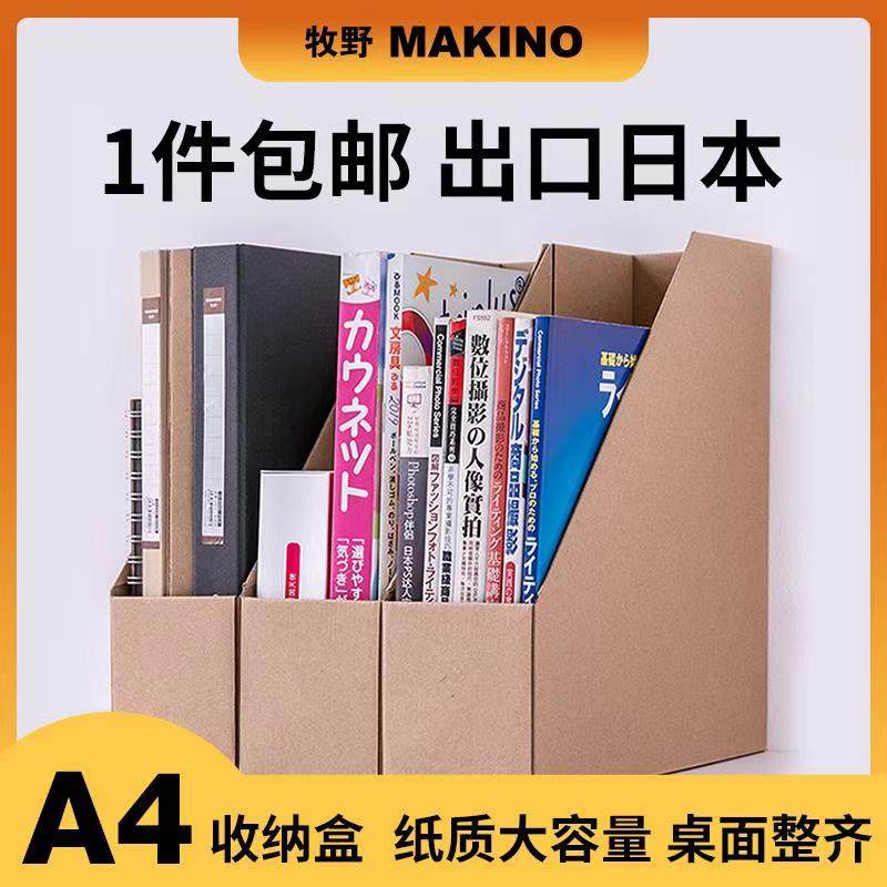 牧野牛皮纸A4文件收纳盒宿舍桌面书立立式办公架储物橱柜整理