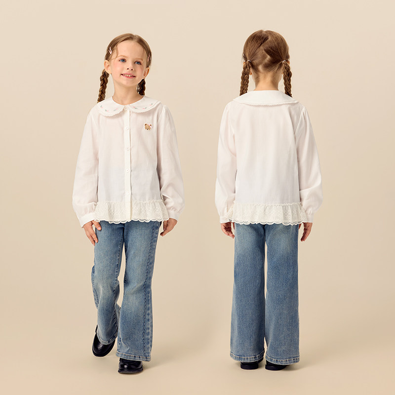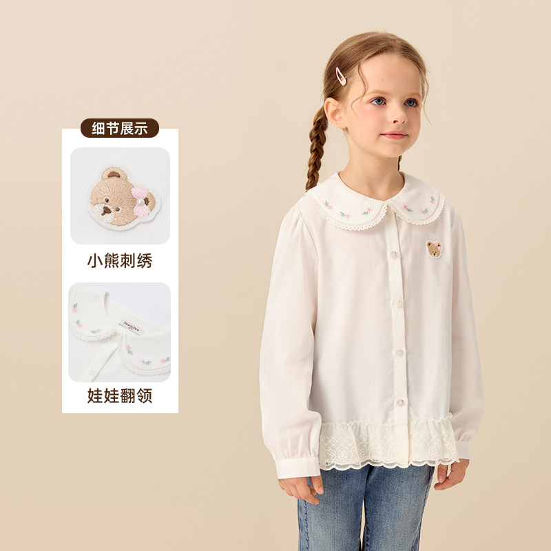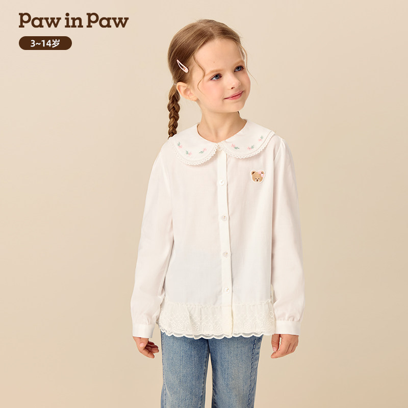 【天丝】PawinPaw卡通小熊童装25年冬季新款女童翻领梭织衬衫