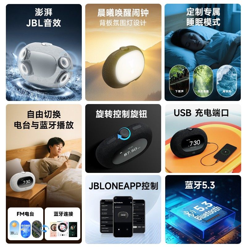 JBL HORIZON3新款音乐地平线三代无线蓝牙数字闹钟音响桌面音箱