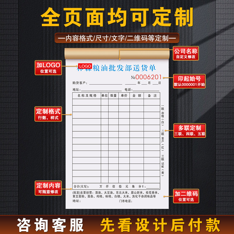 【粮油批发店专用】送货单调味品销售清单干货送销货单面粉发货单