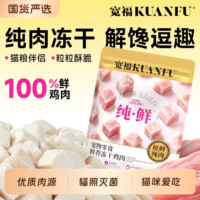 宽福冻干猫零食猫咪冻干鸡肉粒鸡胸肉宠物成幼猫零食桶营养洁齿