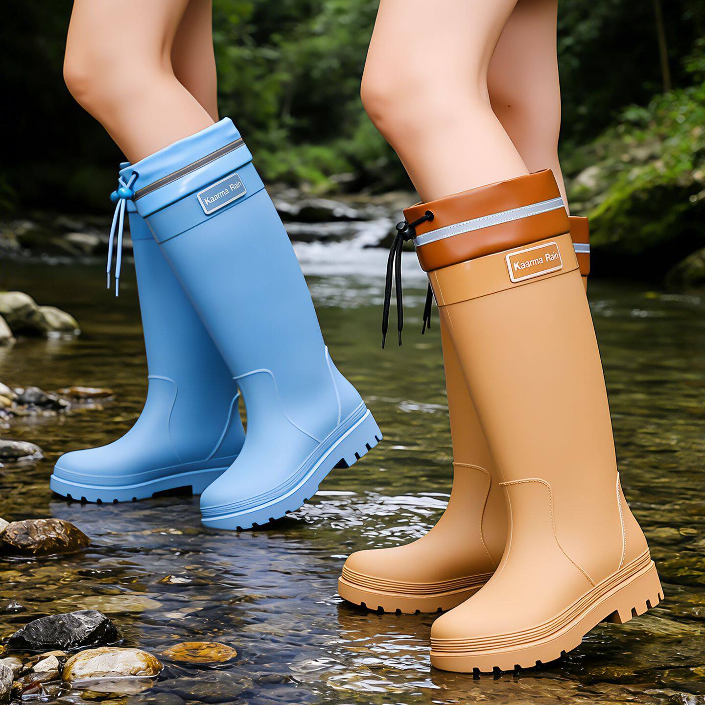 高筒束口女士水雨鞋女款加厚时尚雨靴防滑成人厨房耐磨保暖防水鞋