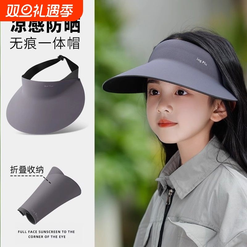 夏季一体儿童防晒帽帽子无痕大帽檐太阳帽遮阳男女童空顶防紫外线