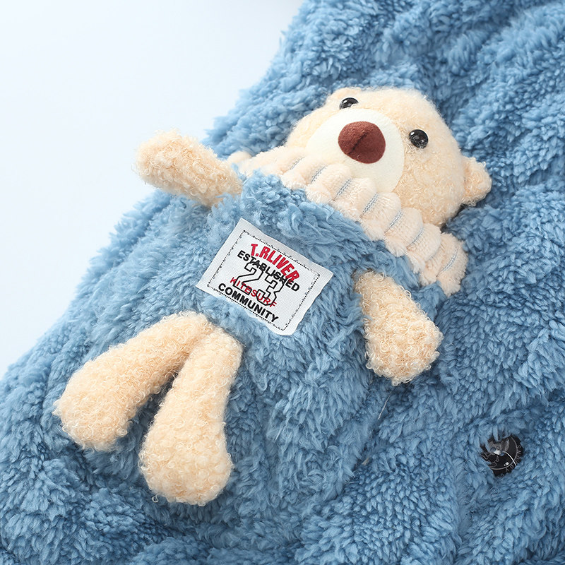 小黑托昵男女童连帽睡衣套装半边绒儿童家居服冬款加绒加厚空调服