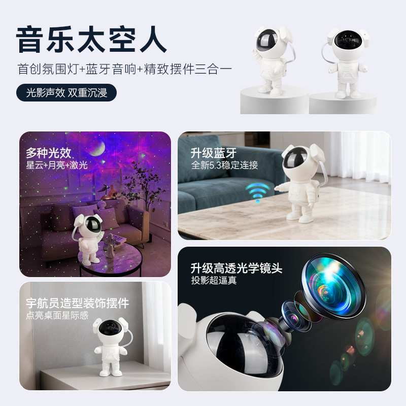 新品蓝牙宇航员星空投影灯满天星激光投影仪浪漫氛围太空人小夜灯
