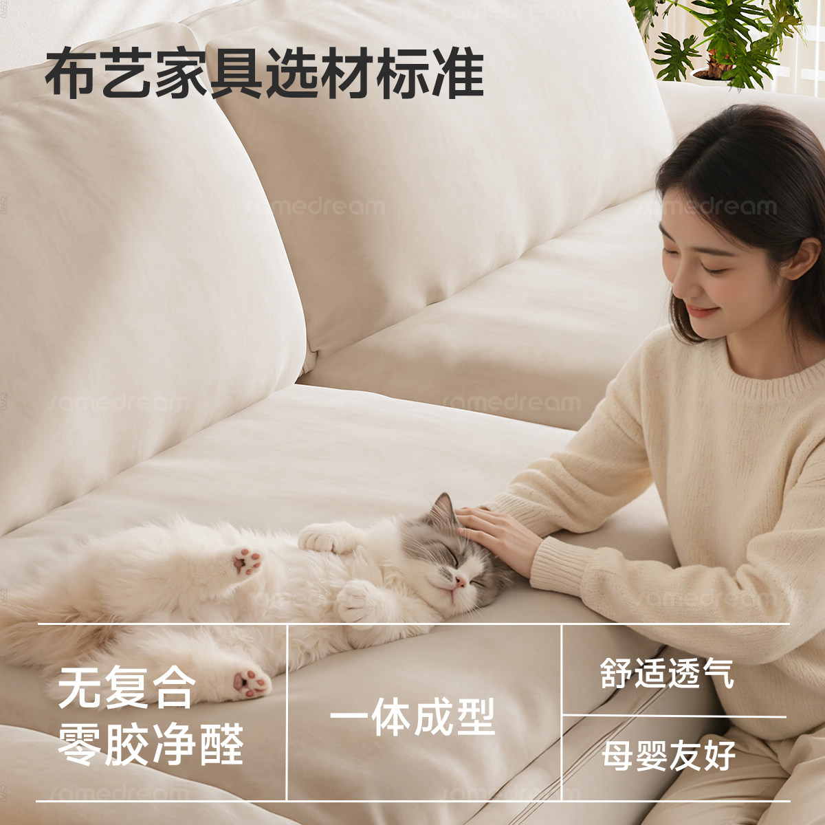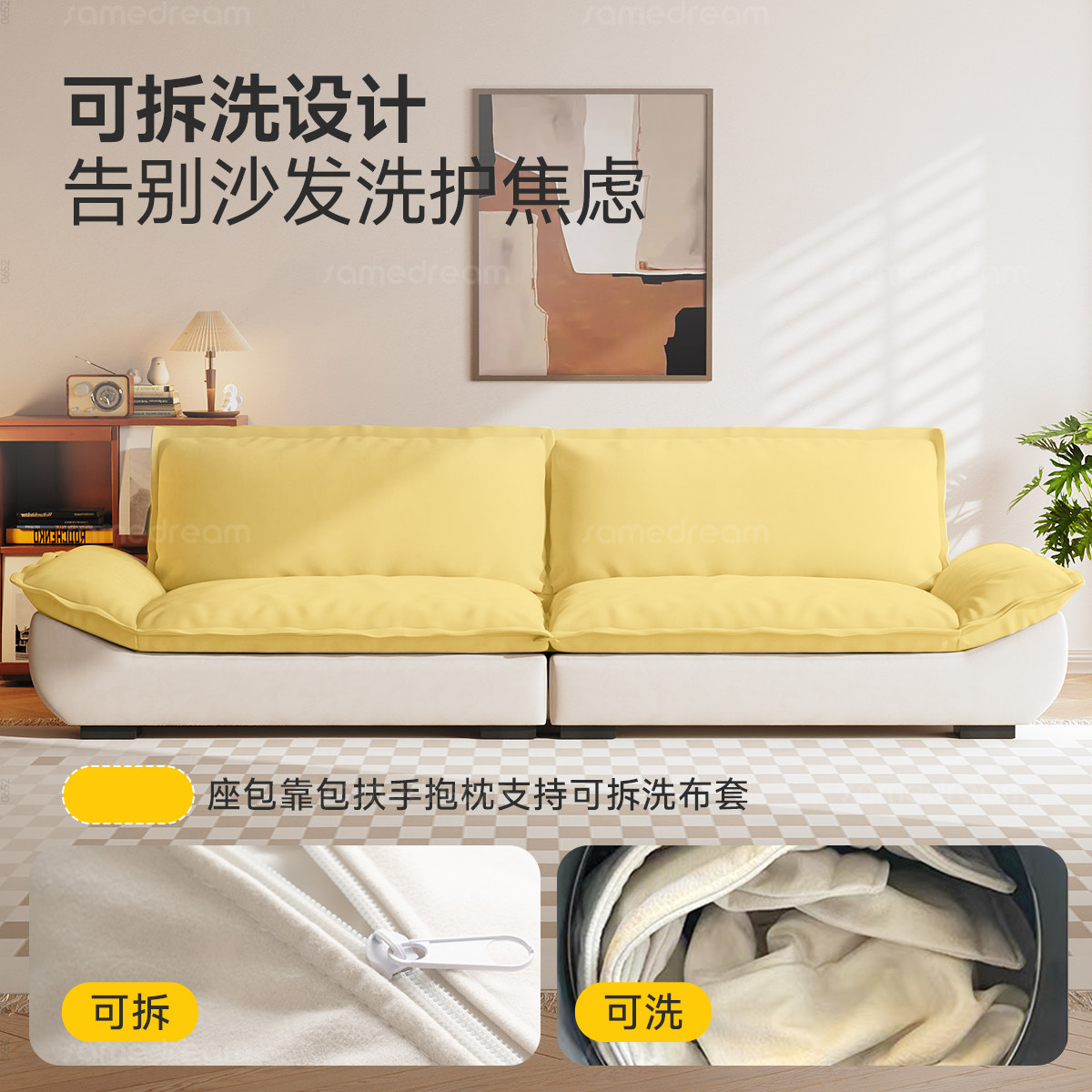 奶油风布艺沙发客厅2025新款小户型家用可拆洗三人位直排云朵沙发