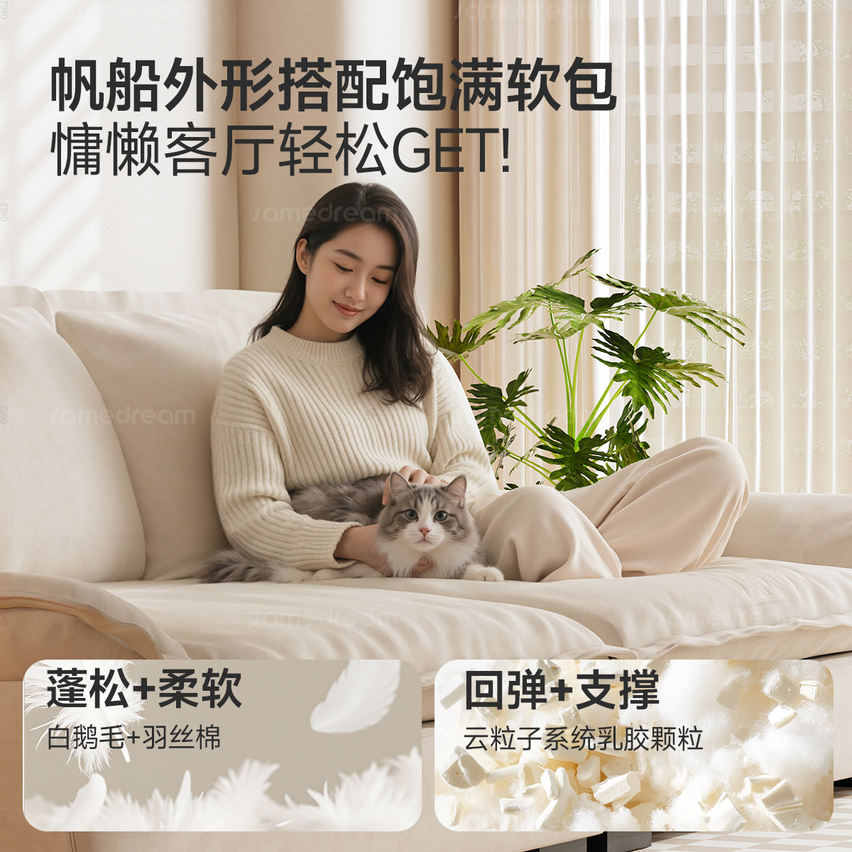 三梦帆船布艺沙发政府补贴客厅2025新款小户型双人直排防猫抓沙发