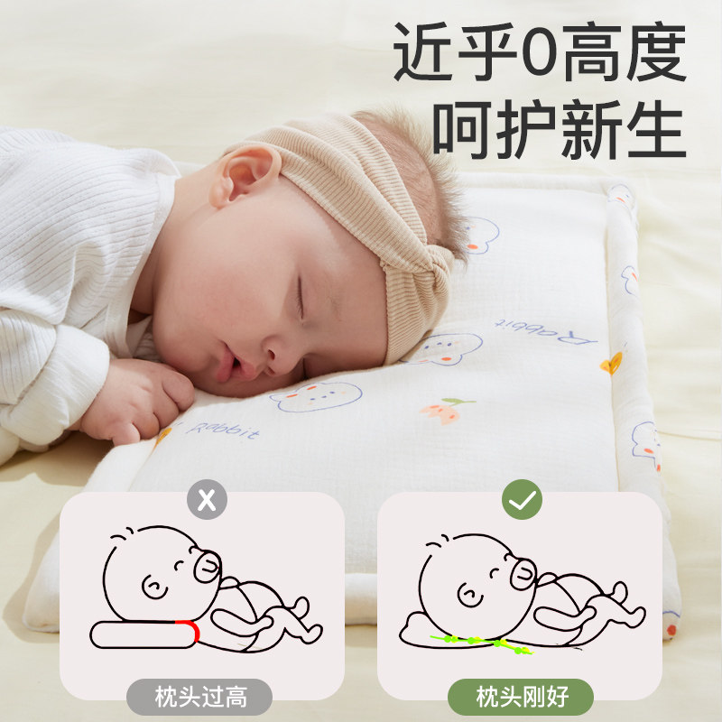 贝肽斯新生儿云片枕头婴儿纯棉纱透气吸汗宝宝0到6个月防吐奶枕巾