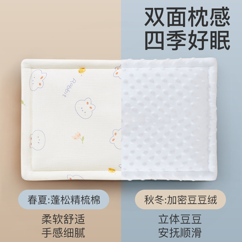 婴儿枕头0到6个月云片枕平枕巾一1岁纯棉新生儿宝宝安抚豆豆绒枕