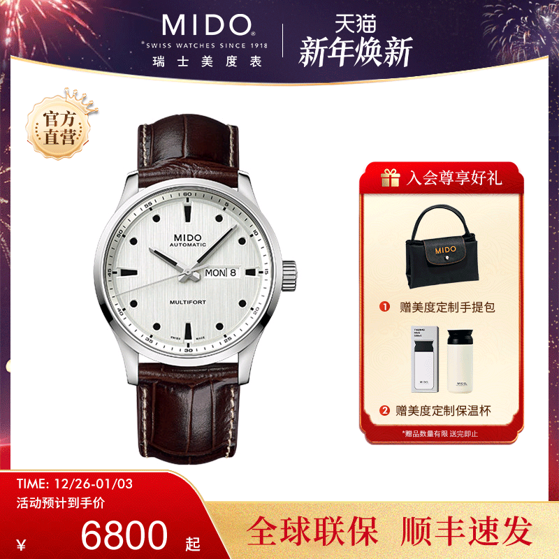 Mido美度新款男士手表舵手系列千禧款全自动机械男表男款礼物腕表