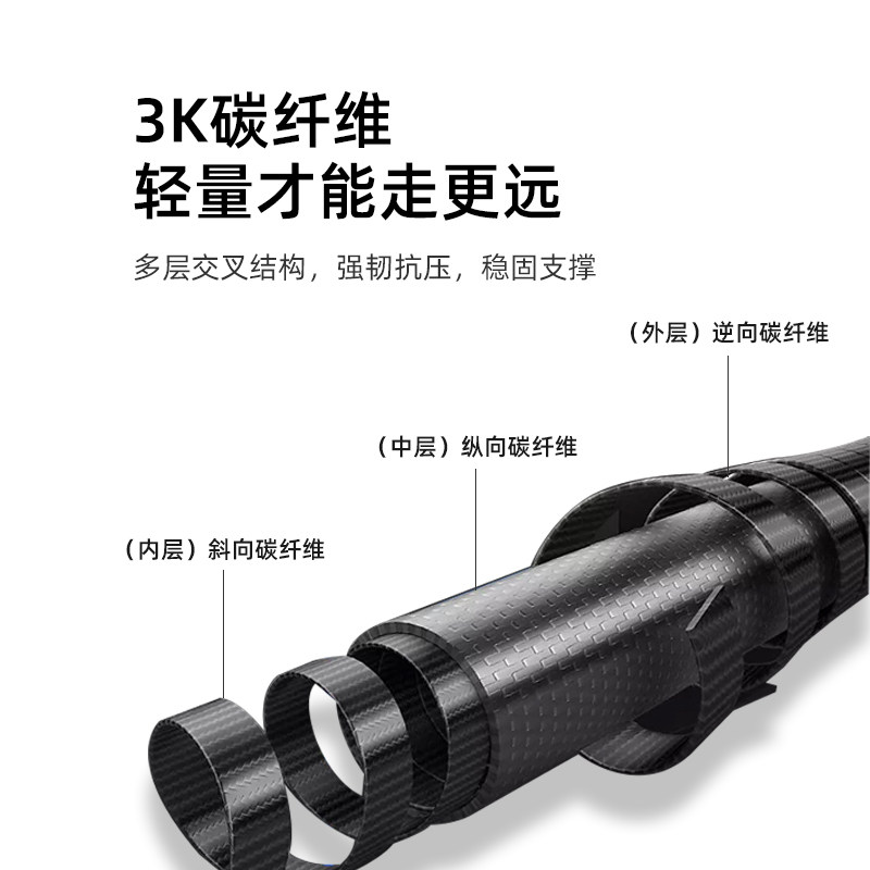3K碳纤维杖身 轻量可折叠 轻至131克