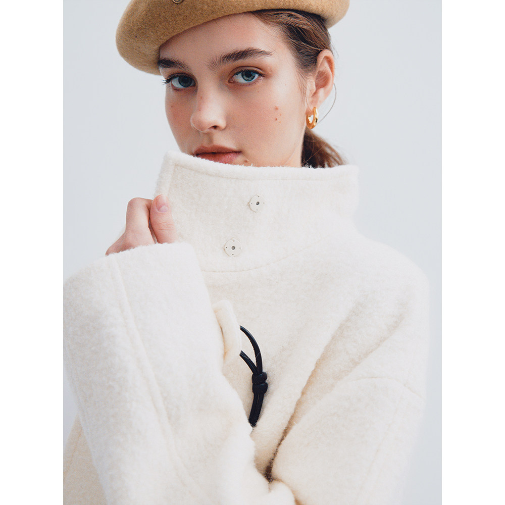 RUISHI芮时 “雪国印象”100绵羊毛颗粒绒大衣毛绒毛呢外套女冬