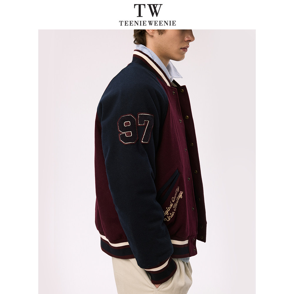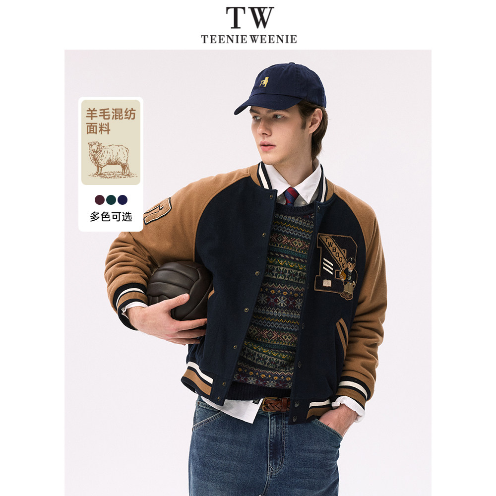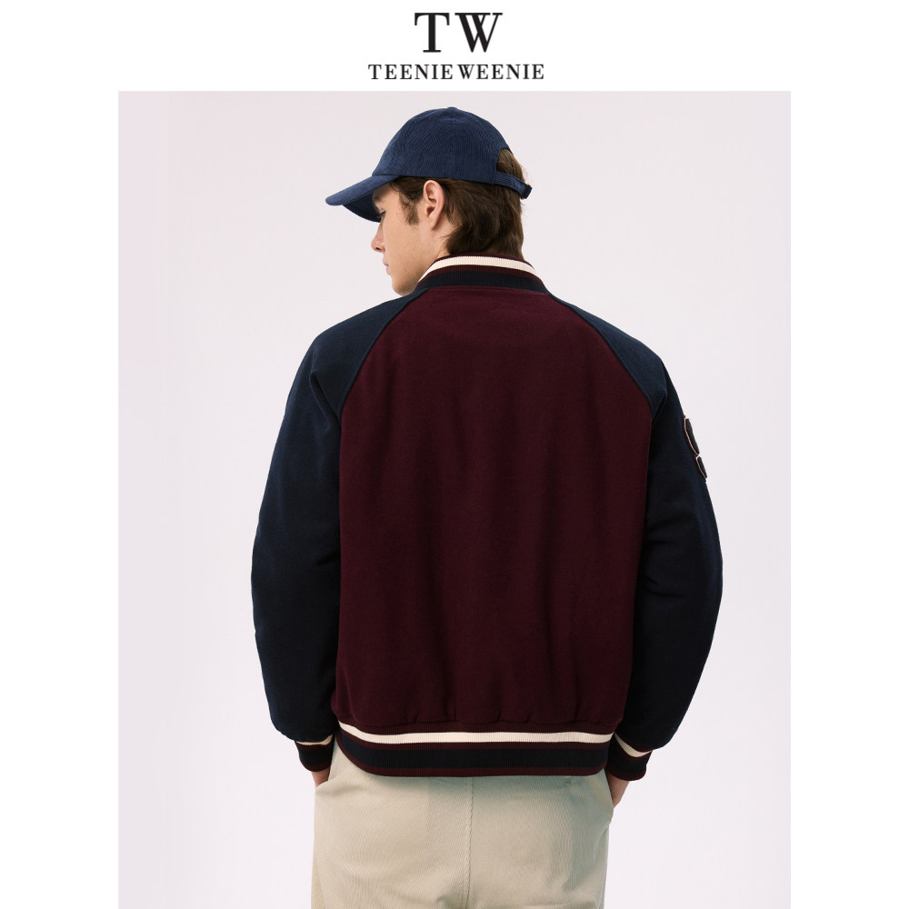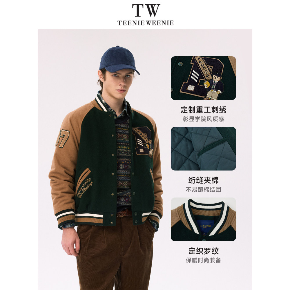 TeenieWeenie小熊男装简约棒球服冬季学院风美式休闲棉服毛呢外套