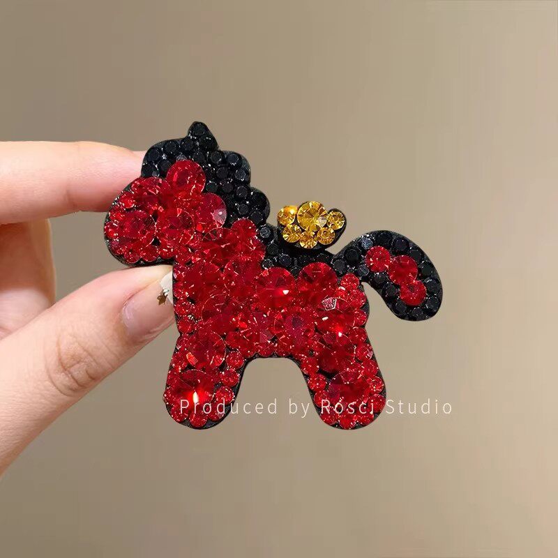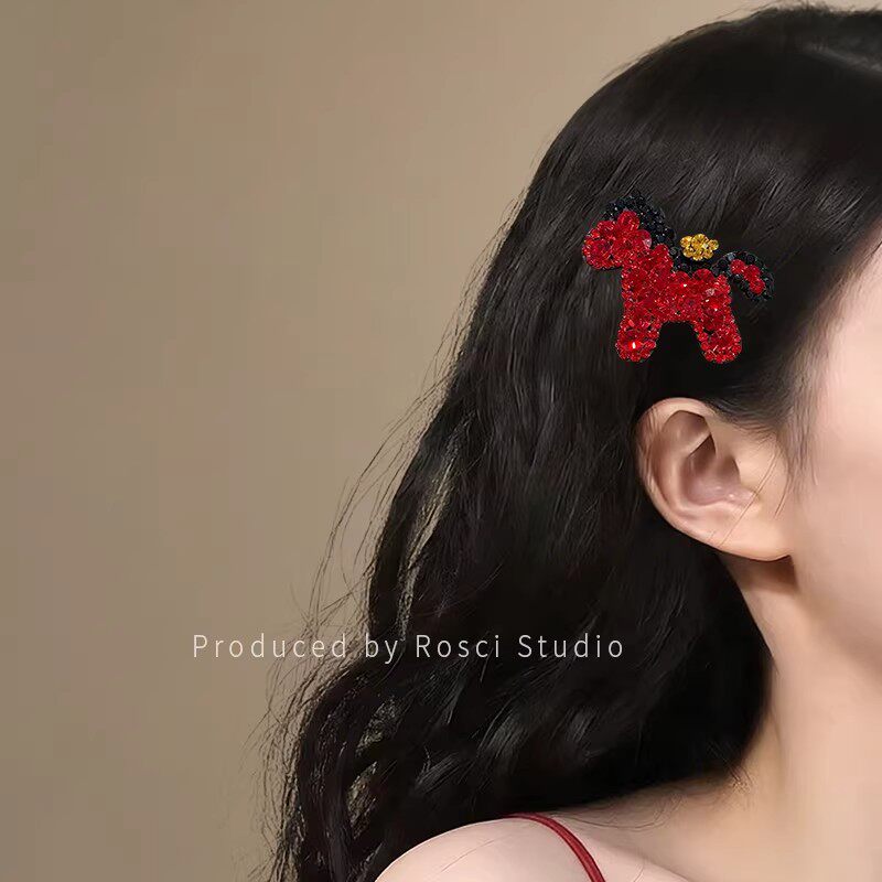 新年闪钻小马发夹女2026新款高级感水钻前额刘海侧边碎发夹子发饰