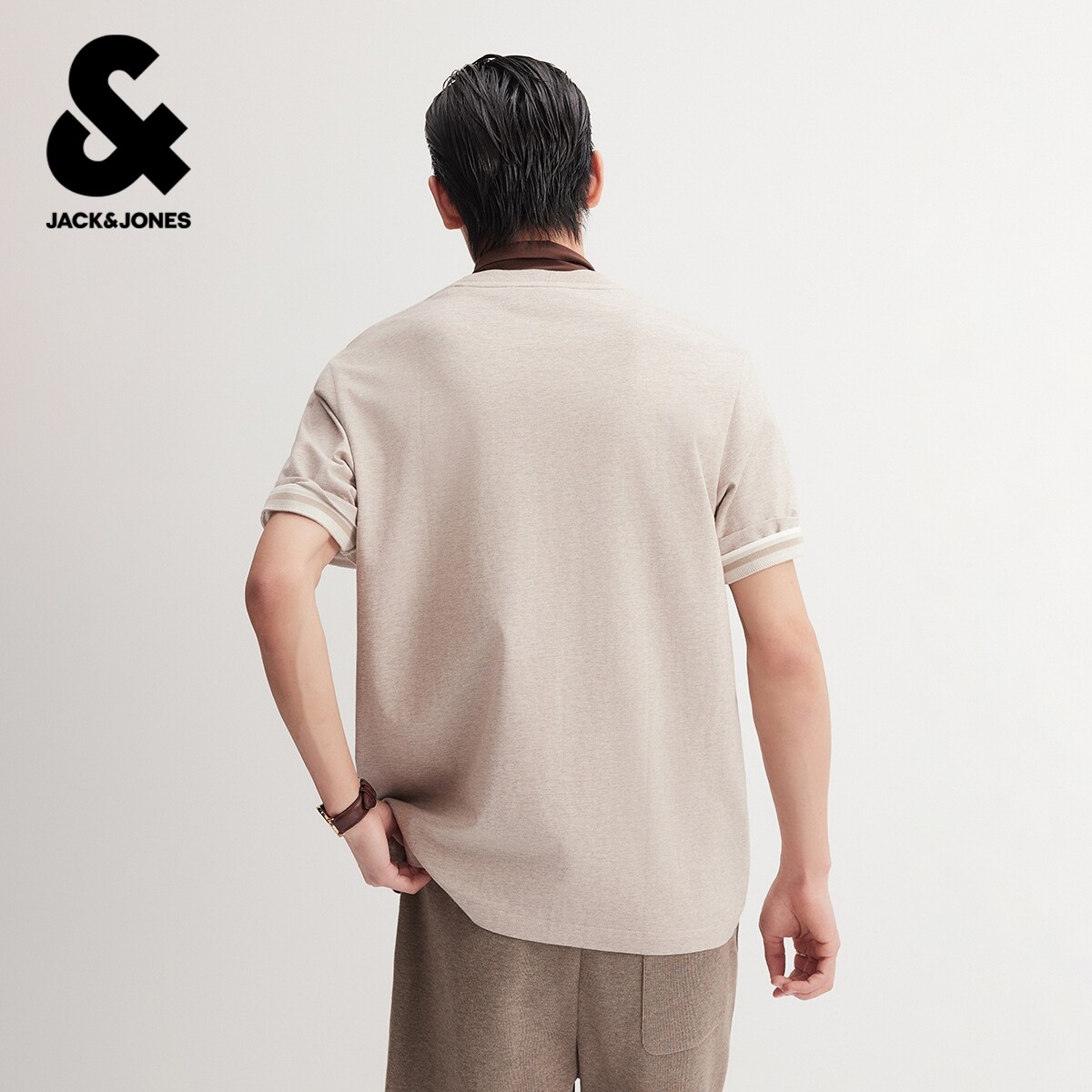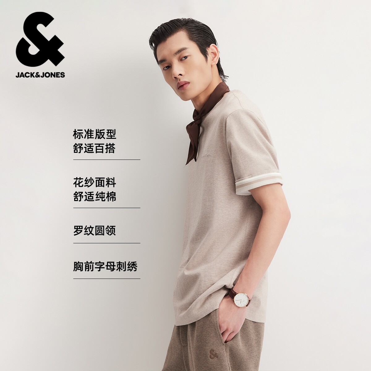 【花纱纯棉】杰克琼斯男装26年春夏T恤打底衫刺绣字母合体情侣款