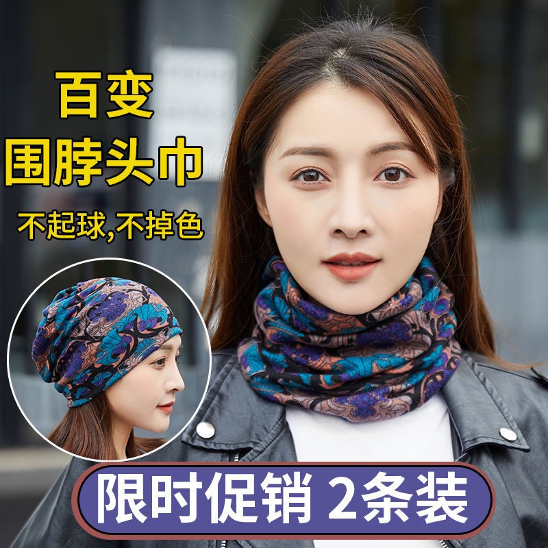 秋冬围巾扭扭帽女百变围脖多功能头巾防风面罩骑行保暖脖套月子帽