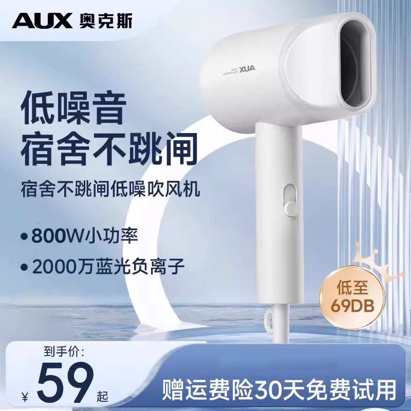 奥克斯800w电吹风机宿舍用学生低噪小功率负离子不跳闸寝室吹风筒