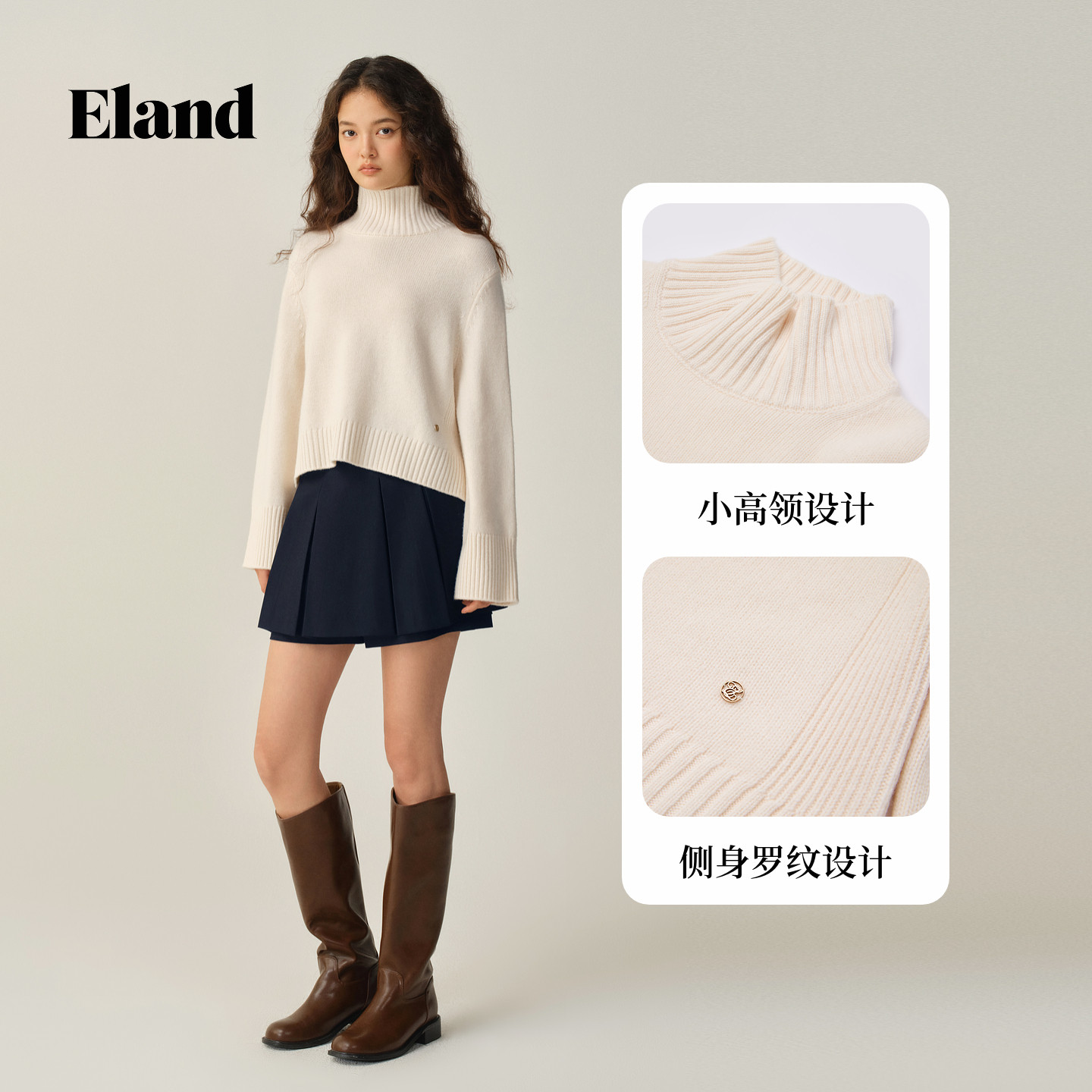 【100%绵羊毛】Eland衣恋毛衣女高领套头针织衫2025冬季新款