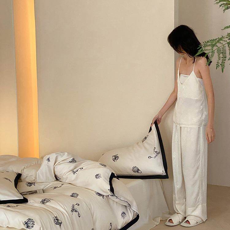 莱赛尔天丝四件套冰丝凉感裸睡丝滑床单被套A类母婴级夏季床品