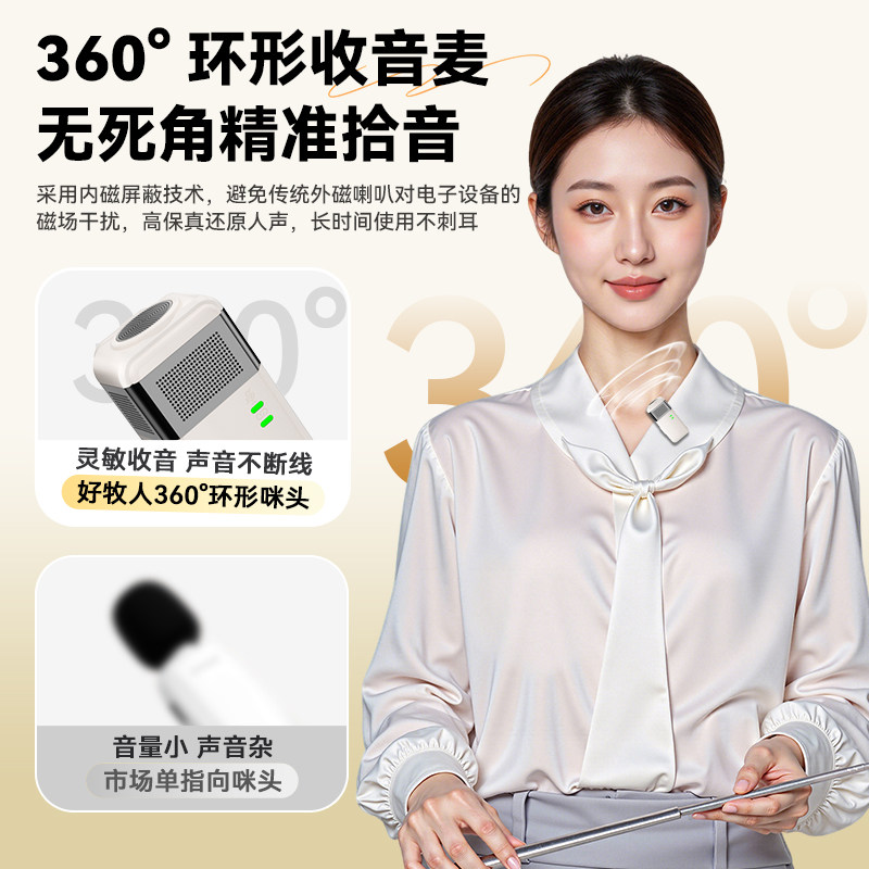 环形收音咪头丨AI智能防啸叫丨磁吸充电一体