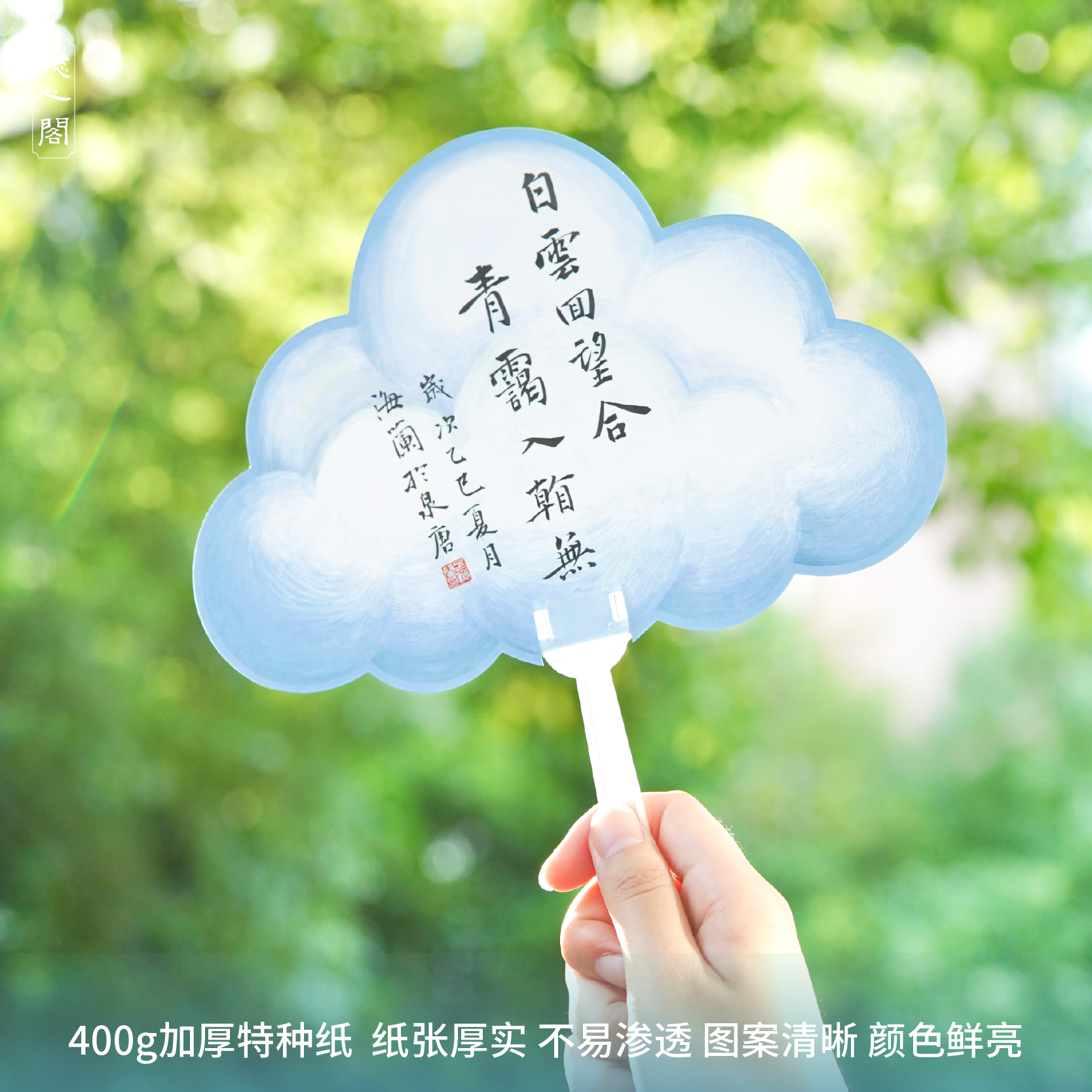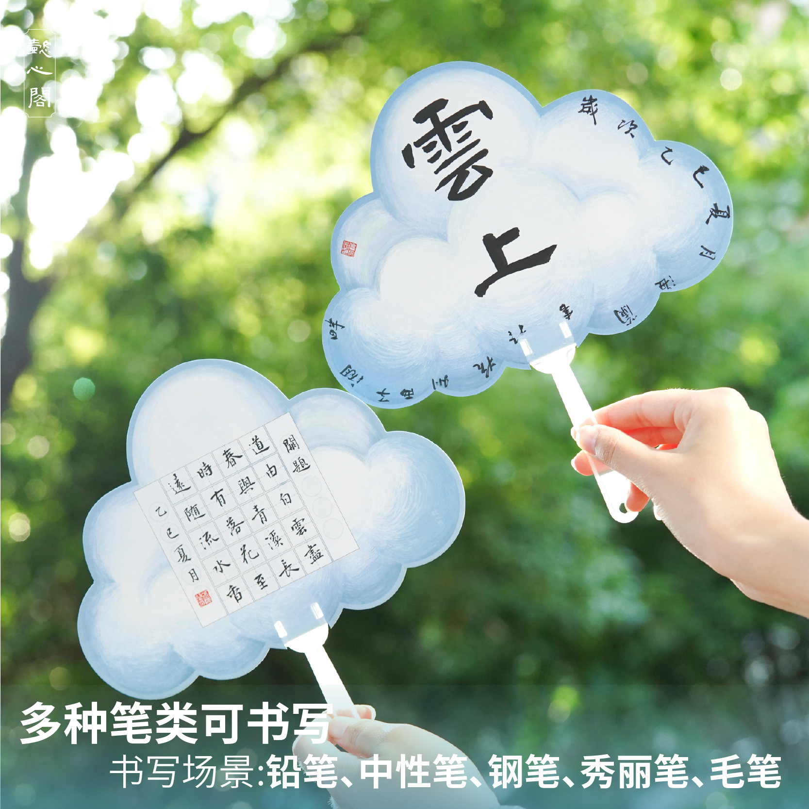 懿心阁云朵创意扇子书法作品纸硬笔书法纸小学生钢笔字专用纸田字格五言古诗写字纸空白加厚高级展示纸夏天