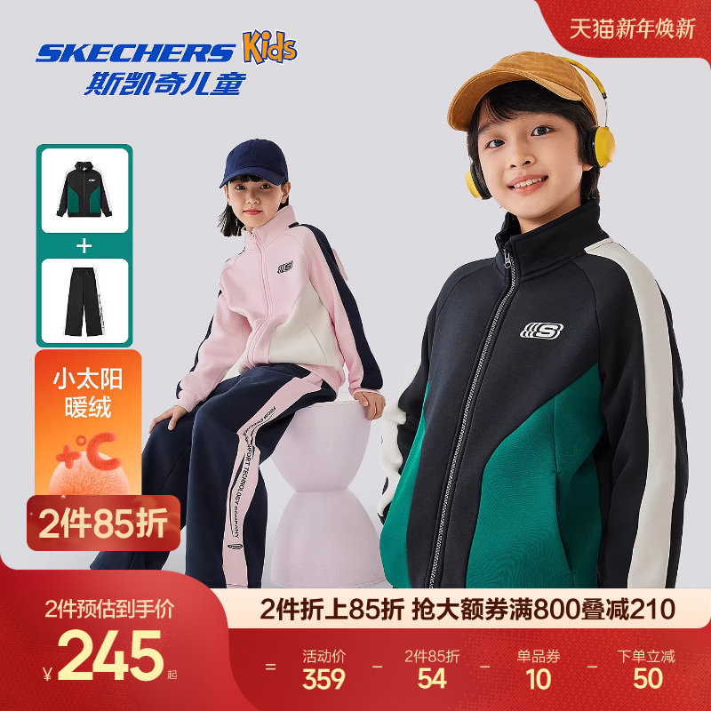 Skechers斯凯奇儿童加绒外套长裤秋冬男女童时尚百搭休闲运动套装