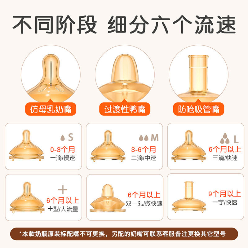 舒婴款婴儿奶瓶防胀气宝宝学饮杯儿童吸管杯奶嘴鸭嘴瓶身宽口径