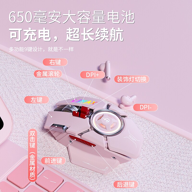 英菲克F9机甲版无线鼠标可充电无声静音电竞游戏笔记本通用typec