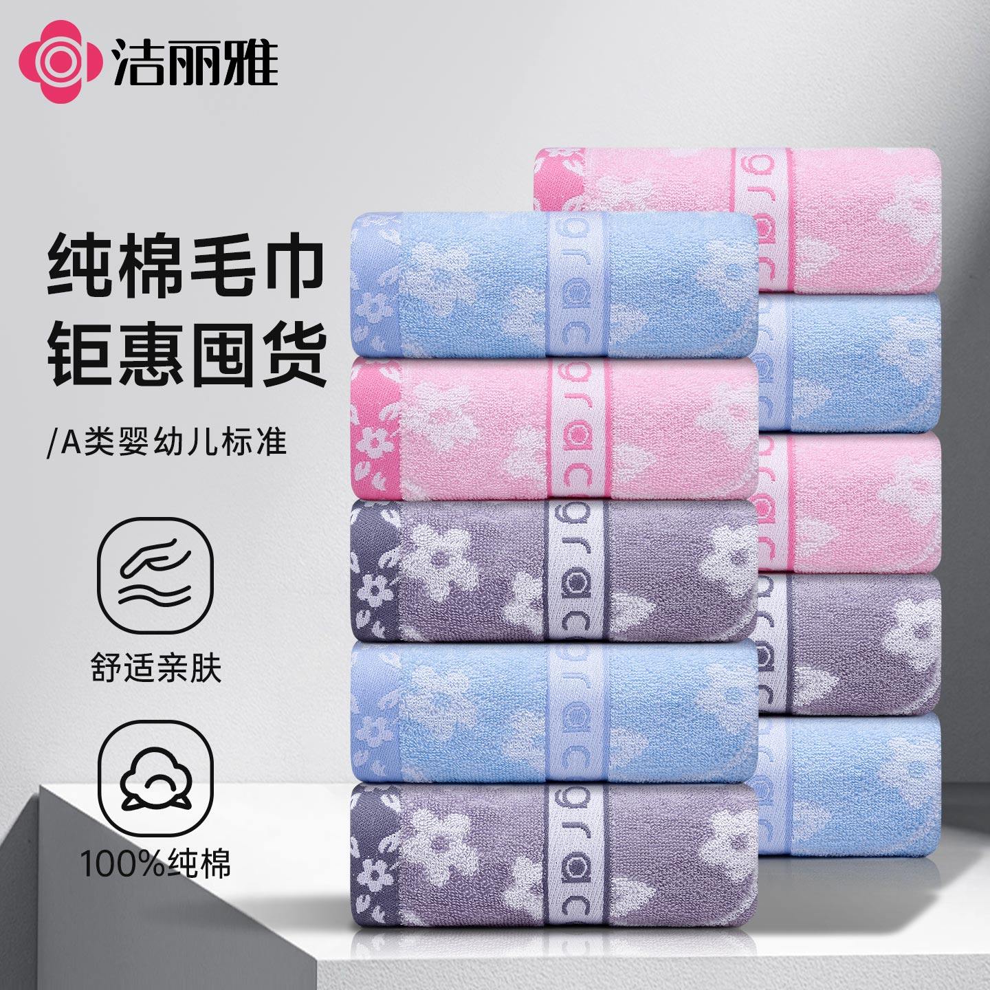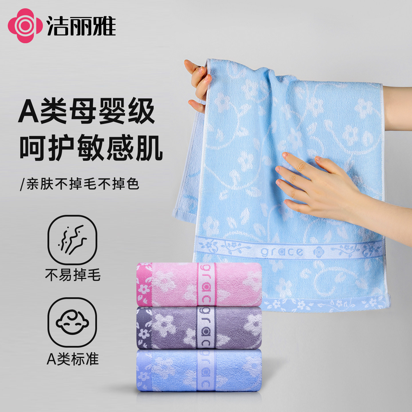 洁丽雅纯棉毛巾5A抑菌加厚吸水成人家用柔软亲肤不易毛不掉絮面巾