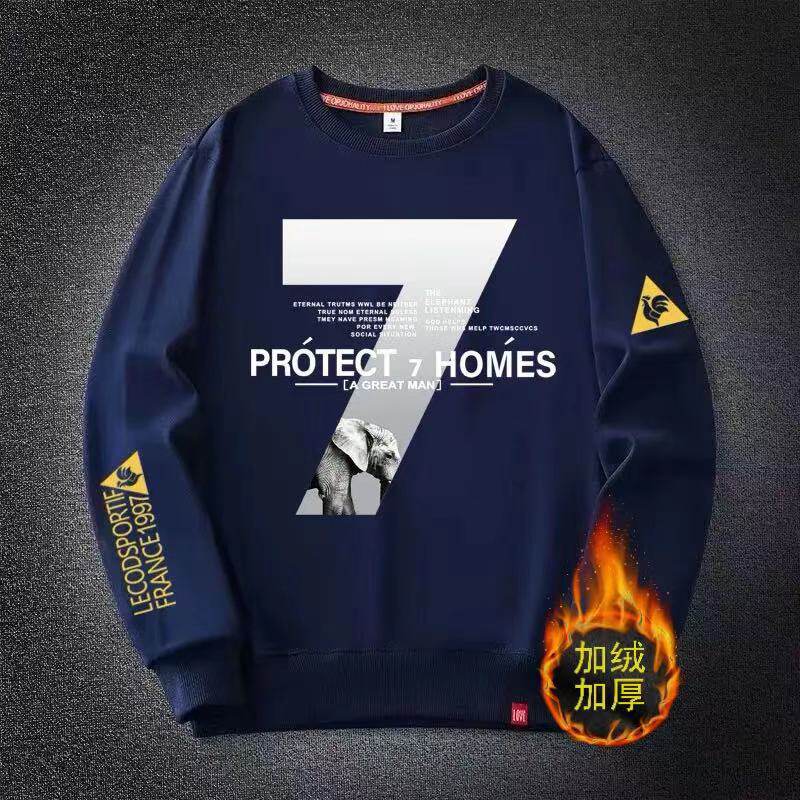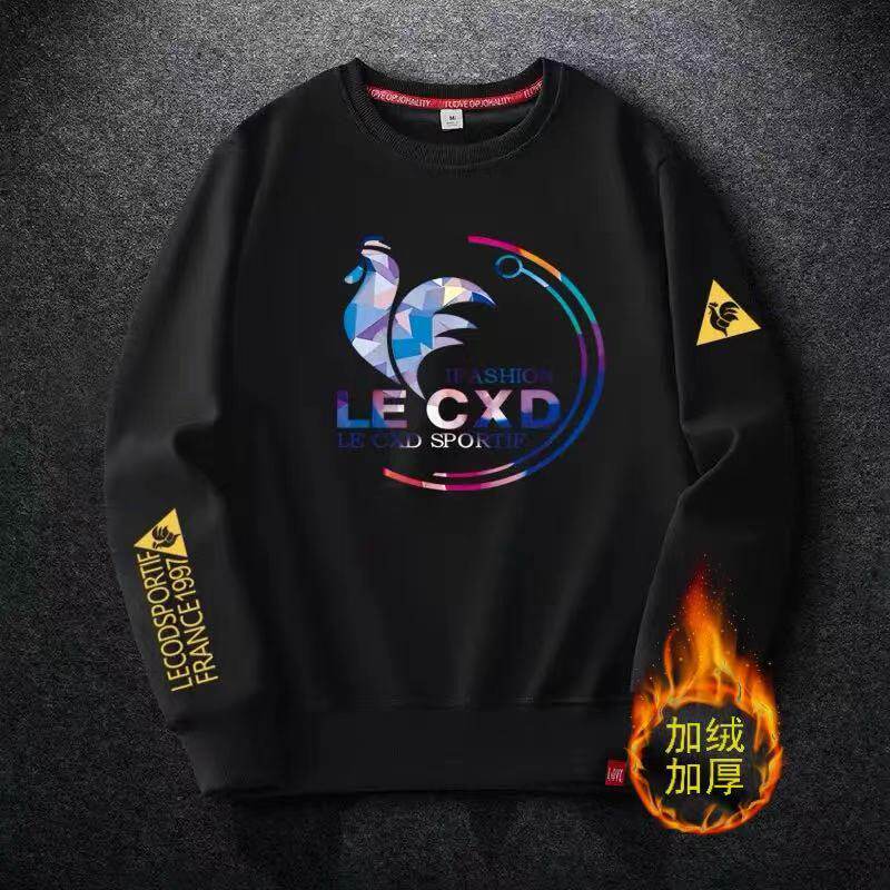 法国公鸡卫衣秋冬款加肥加大藏蓝印花加绒加厚圆领学生上衣男士潮