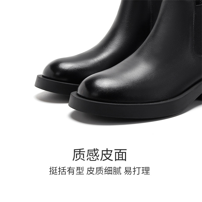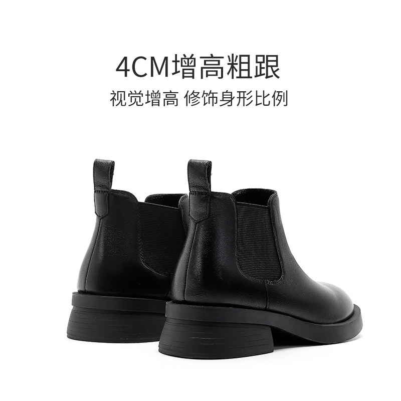 天美意复古厚底加绒切尔西短靴女鞋子瘦瘦靴时装靴皮靴2025冬新款