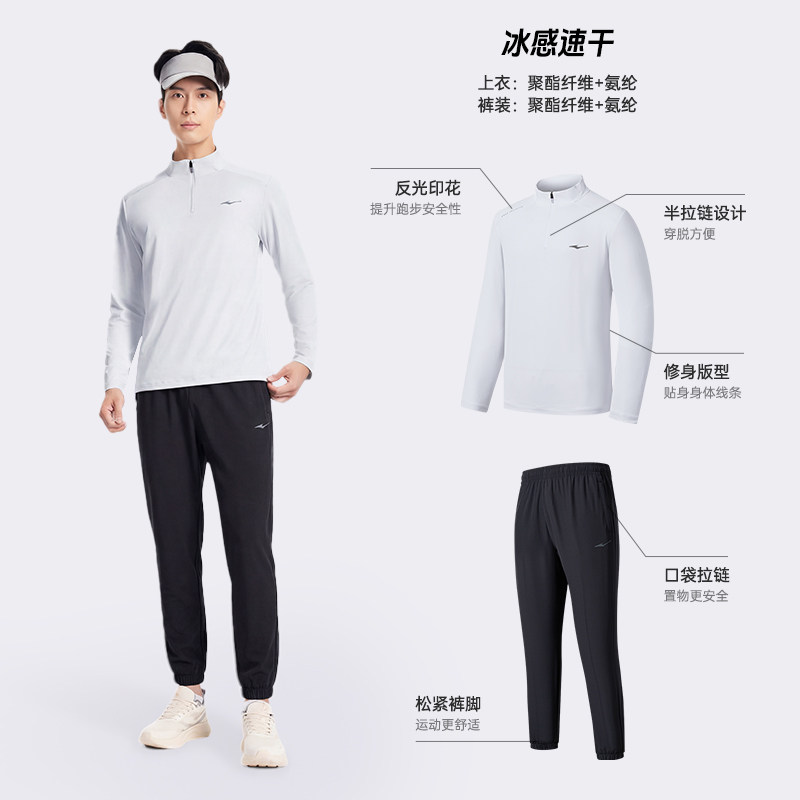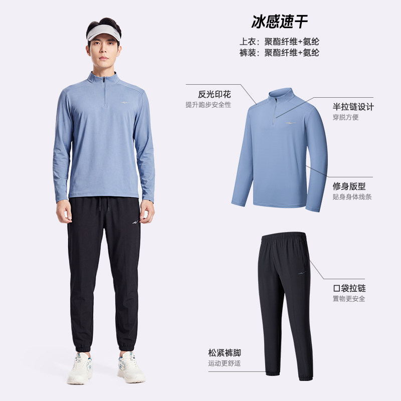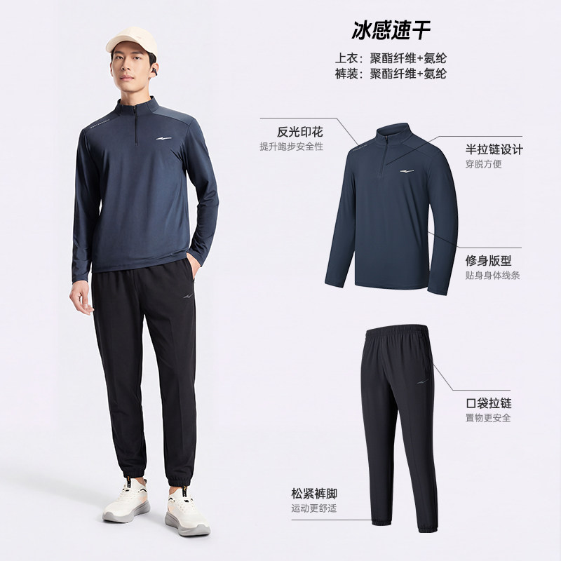 鸿星尔克跑步服男款夏季新款男士速干衣健身训练运动套装长袖t恤