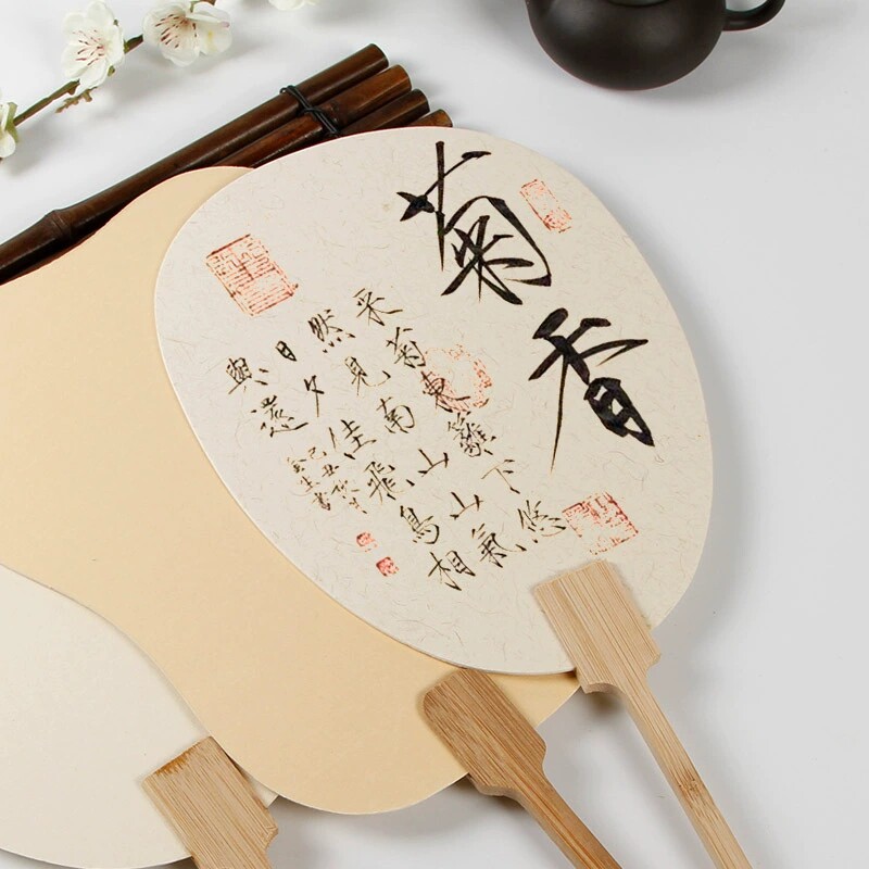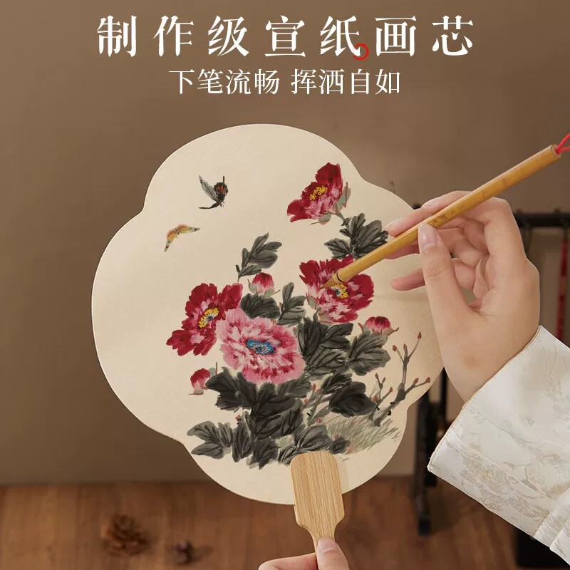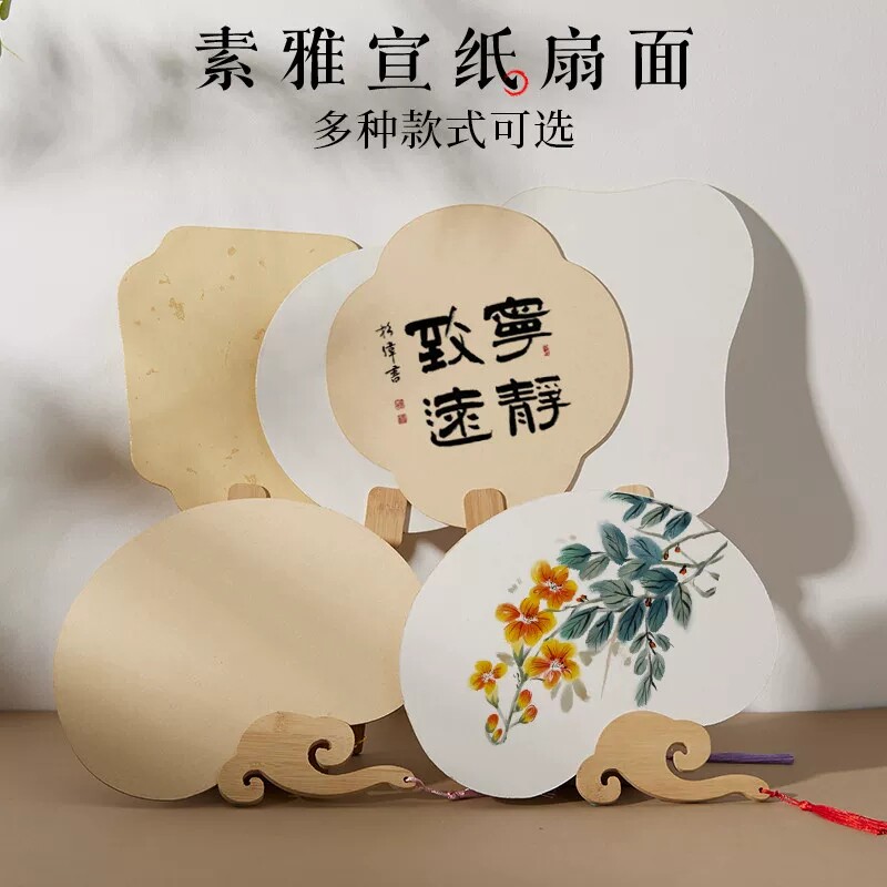 空白扇子宣纸团扇书法国画纸扇熟宣扇面加厚手工半生熟画扇古风生