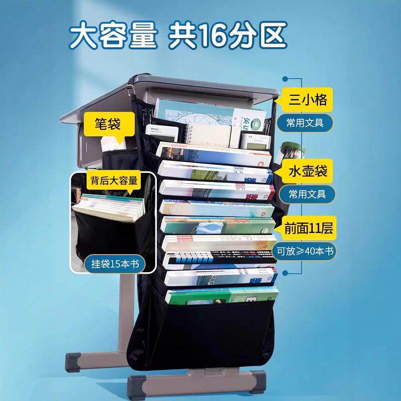 书袋课桌收纳学生书桌挂书袋多功能大容量收纳书袋书桌挂袋初中高中生多功能大容量防水牛津帆布袋学习神器