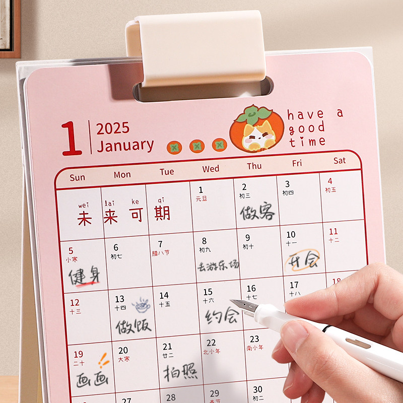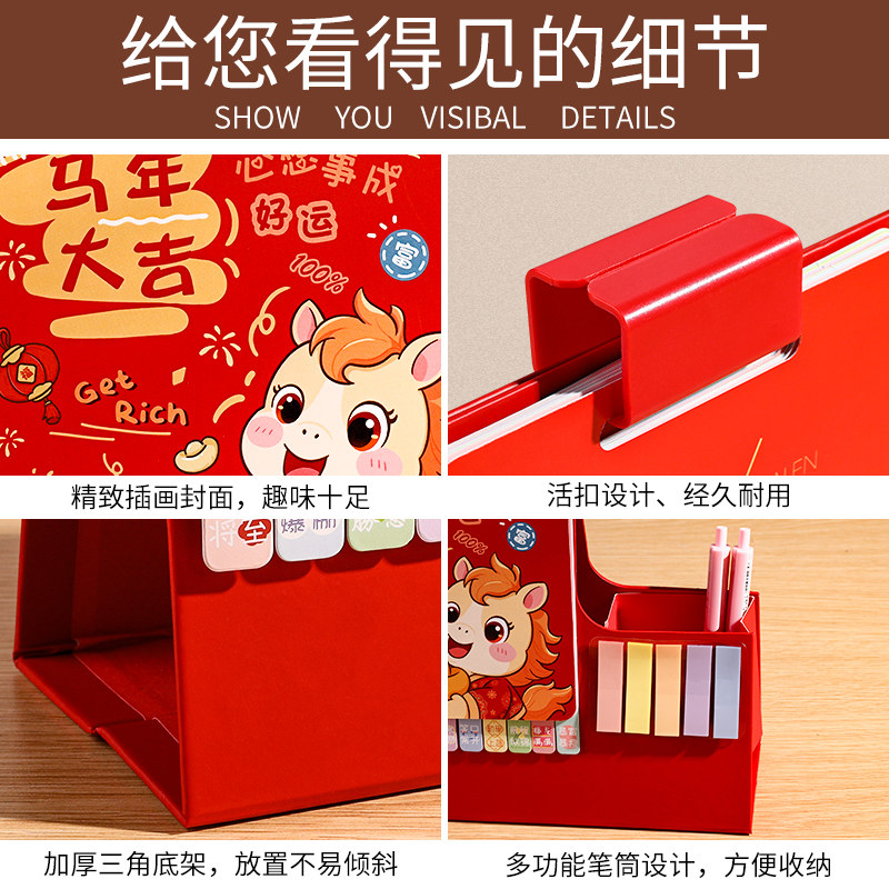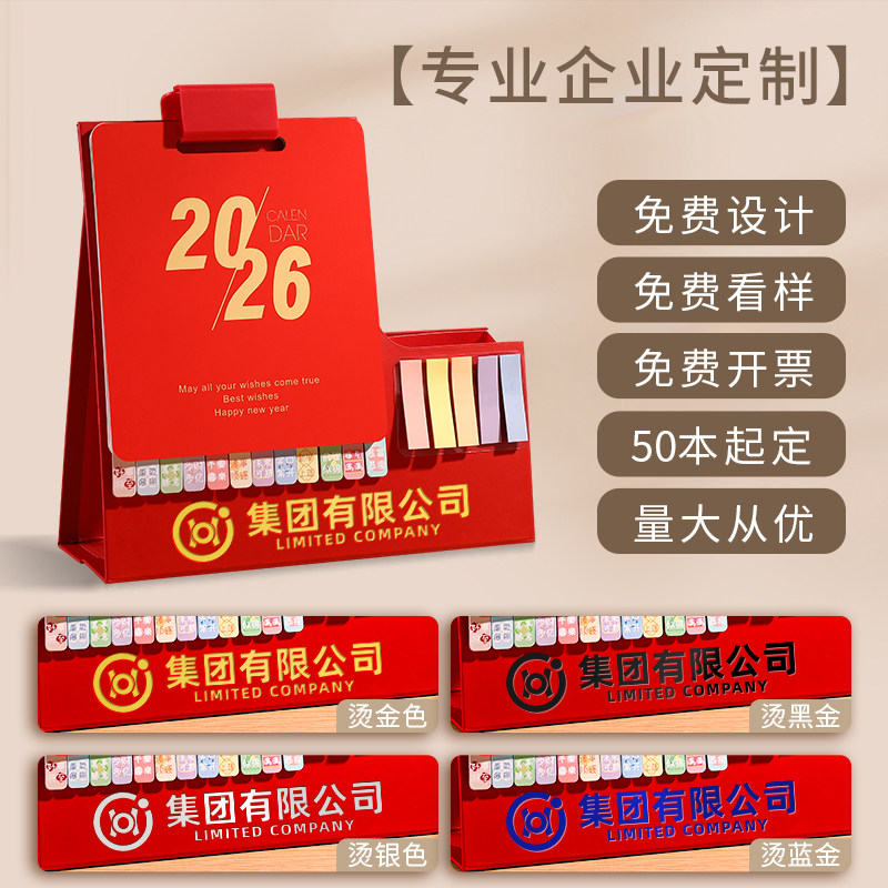 2026年新款多功能活扣笔筒便签台历商务办公桌面打卡记事备忘录考研卡通月历公司广告定制可印logo简约日历本