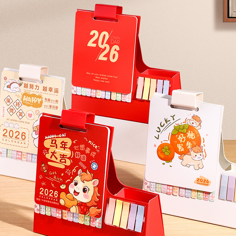 2026年新款台历创意卡通日历全年马年迷你小台历桌面摆件办公室学生每日计划表工作自律打卡记事mini计划月历