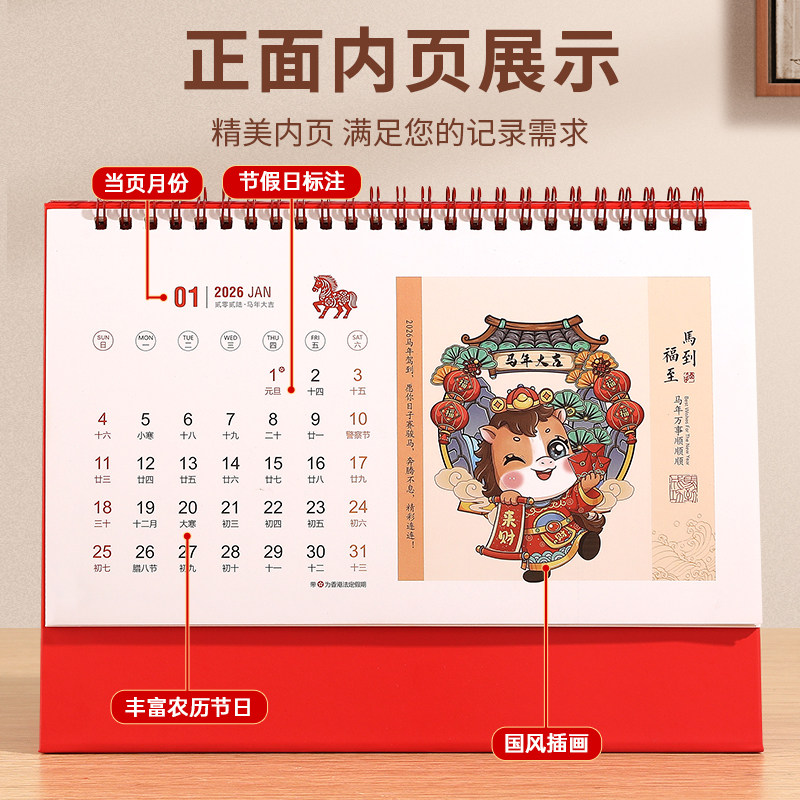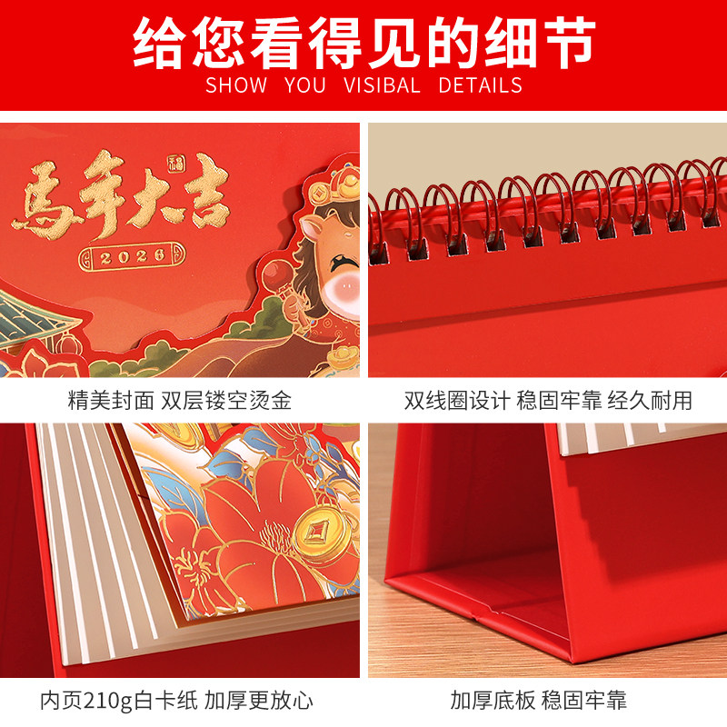 台历2026年新款新年喜庆双层立体日历马年精美镂空打卡倒计时桌面摆件月历商务办公送礼客户定制企业广告logo