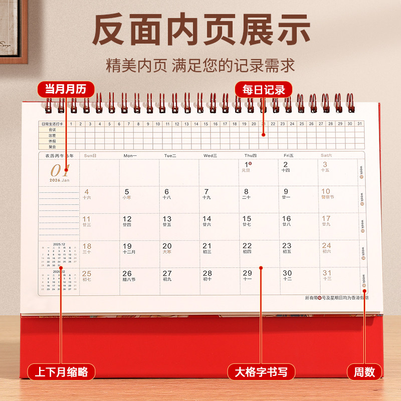 台历2026年新款日历定制logo创意简约小清新韩式办公年历个性中国风桌面摆件商务工作记事计划本订制广告月历