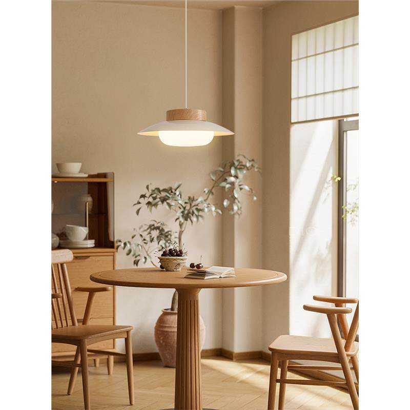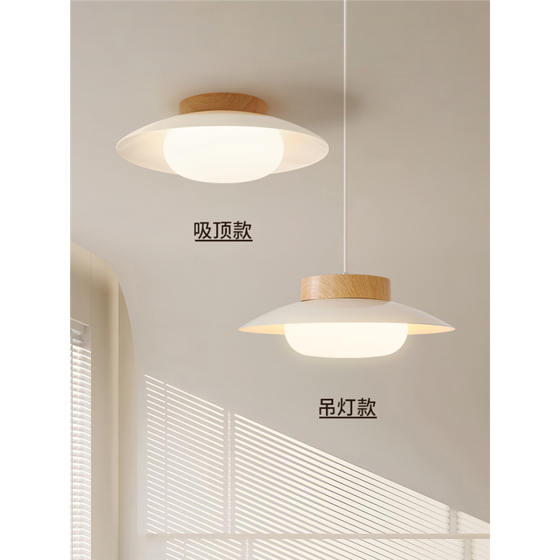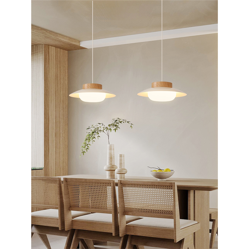 奶油风餐厅吊灯日式原木风餐桌灯中古侘寂风民宿饭厅圆桌吧台吊灯
