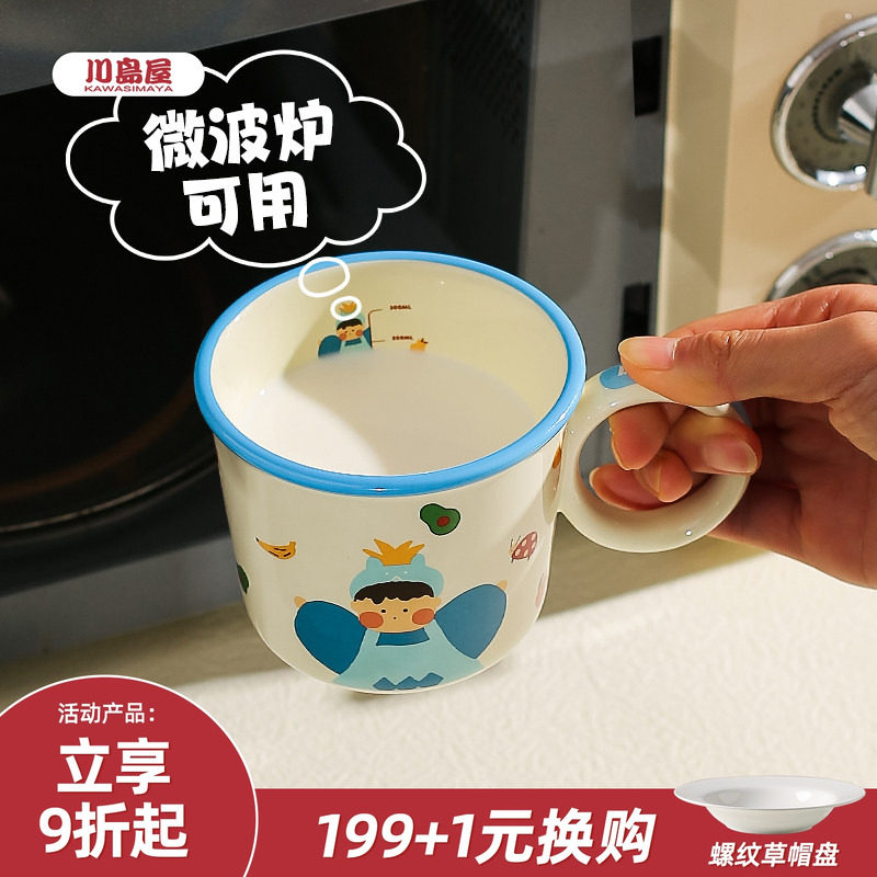 川岛屋刻度牛奶杯微波炉可加热儿童水杯家用陶瓷马克杯燕麦早餐杯