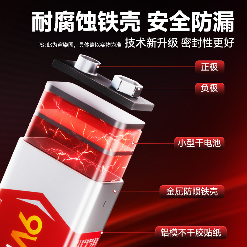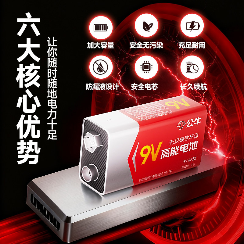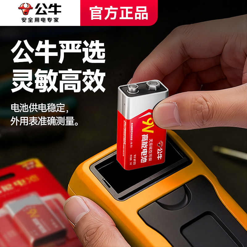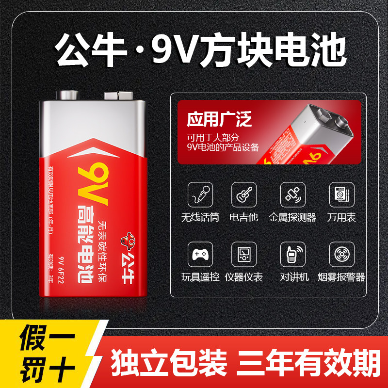 公牛新款9v电池方块电池方形叠层遥控器万用表9号干电池碳性大容量烟雾报警器无线话筒九伏碳性电池9v6F22