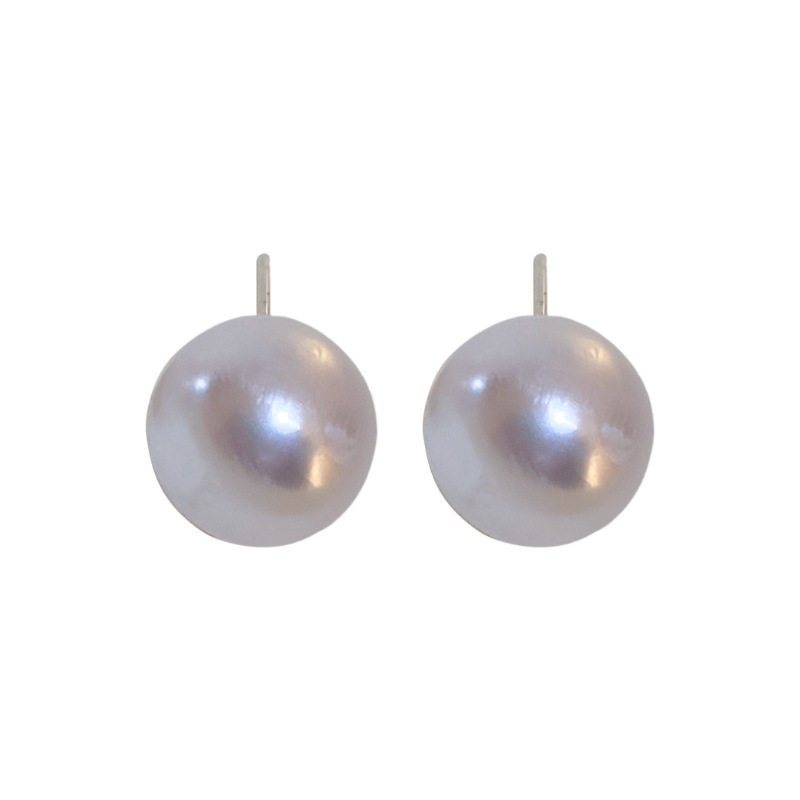 999纯银耳钉女施家珍珠馒头珠耳环扁圆高级气质法式复古轻奢耳饰