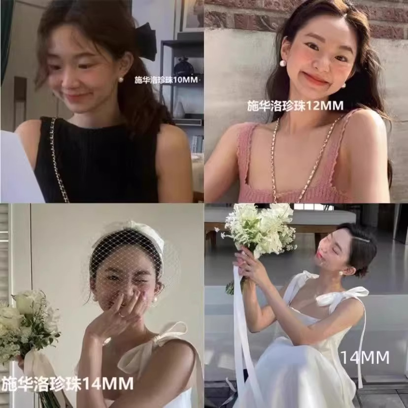 fever同款珍珠耳钉999纯银施家耳环2025新款爆款高级轻奢正圆耳饰