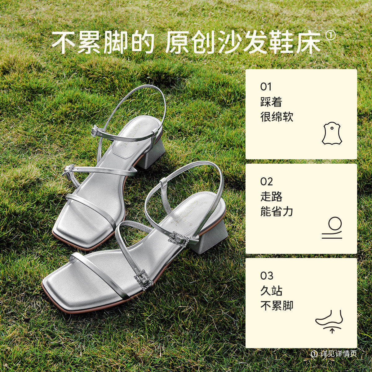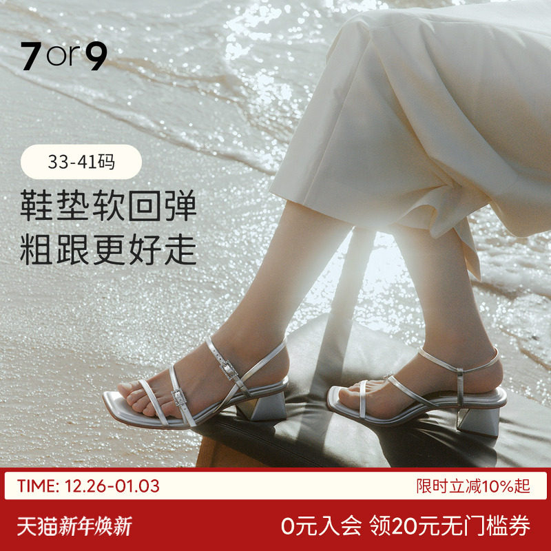 7or9银莲花女士夏季凉鞋中跟2025银色高跟鞋小众设计感气质大码鞋