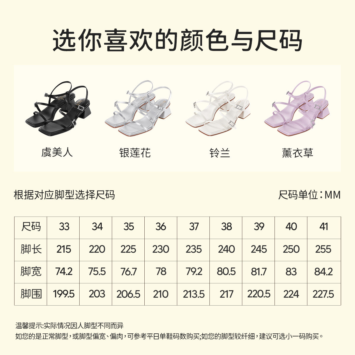 【离不凡】2025早春新款圆头小香风拼色金属布面粗跟细带平底凉鞋