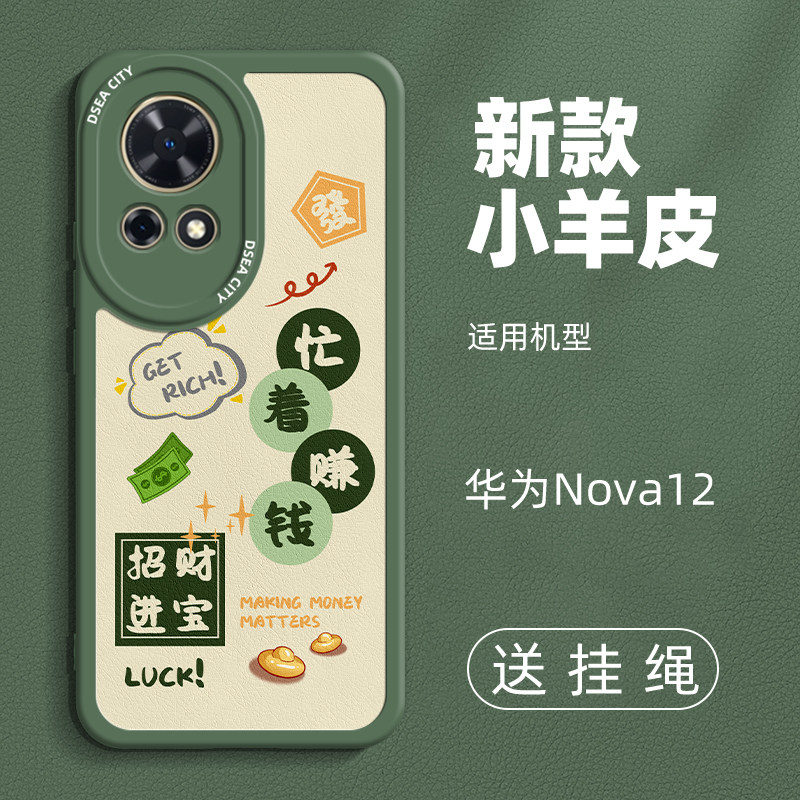 新款华为nova11pro的手机壳小羊皮pro硅胶nova12适用于hi nova11防摔全包绿色11ultra女款忙着赚钱12活力板
