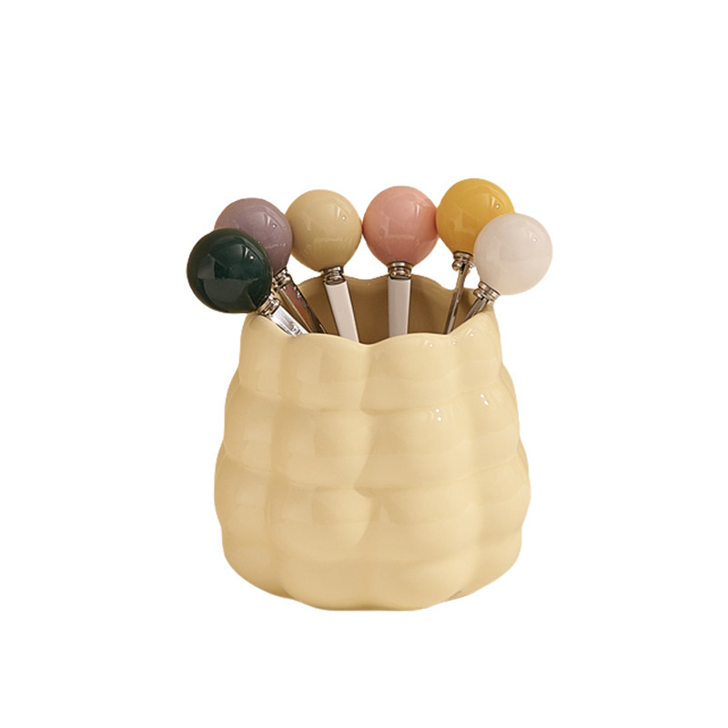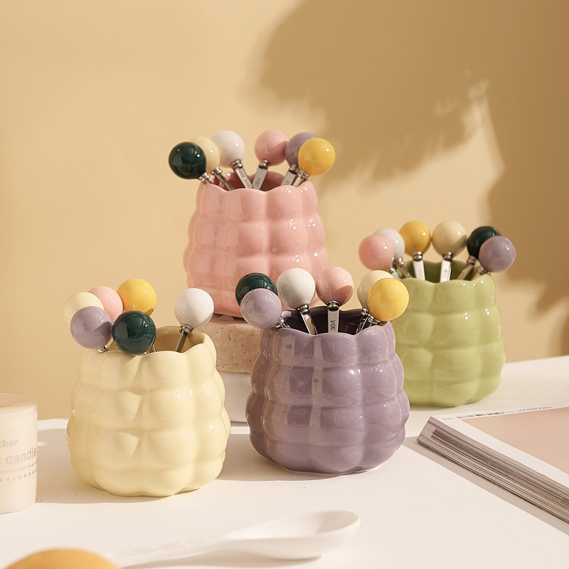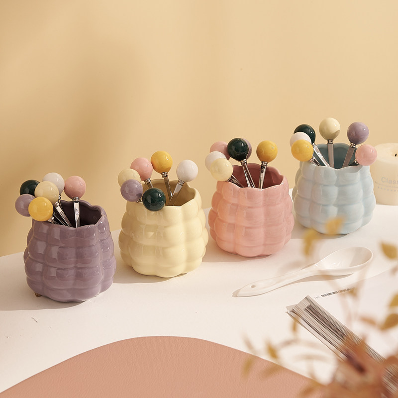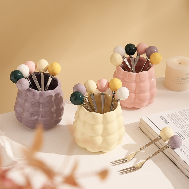 水果叉套装奶油风收纳罐叉子家用陶瓷少女心高颜值创意可爱瓶罐