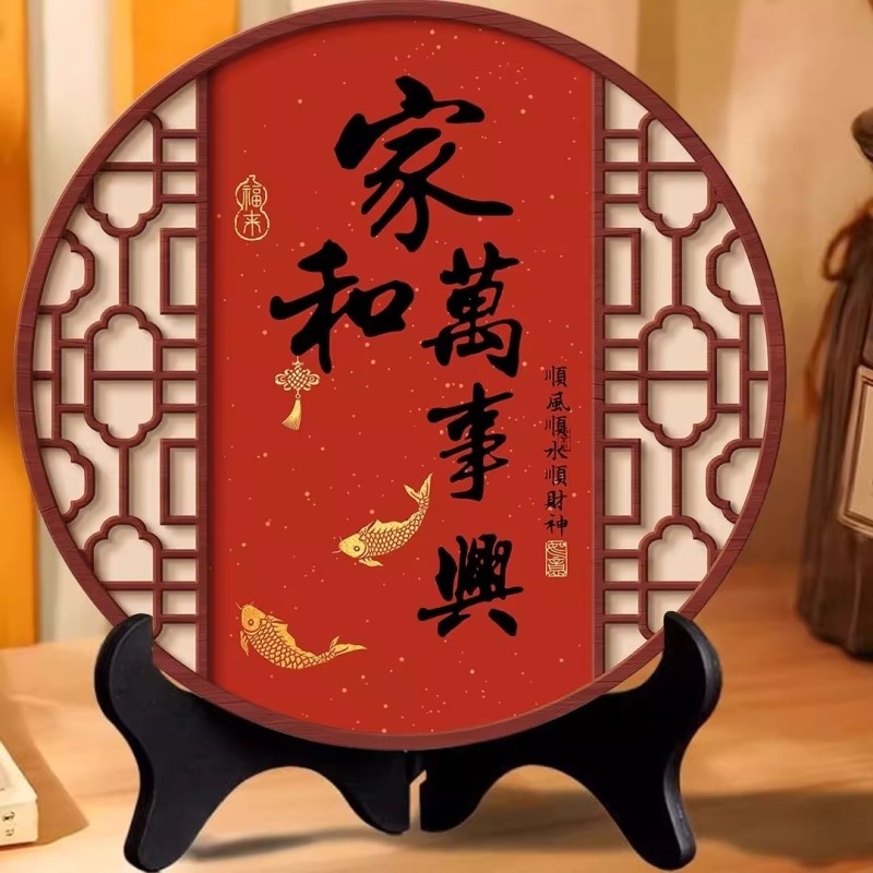 新中式入户进门装饰画餐厅饭桌墙挂画家和万事兴客厅玄关窗形壁画